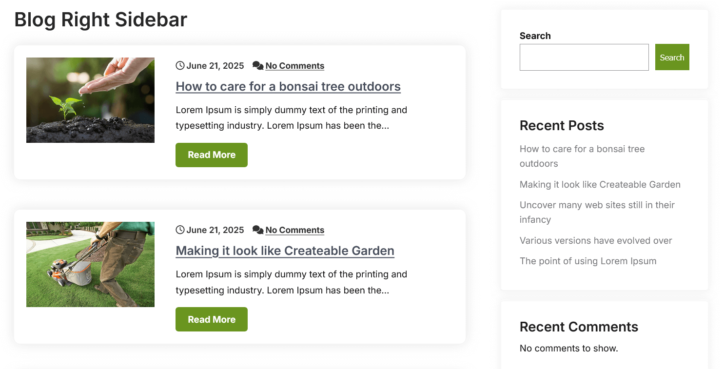 - Used to setting up the content on any page with Right Sidebar