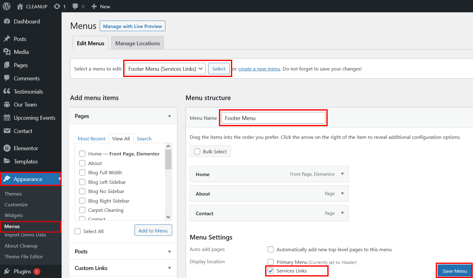 - Go to Appearance > Menu