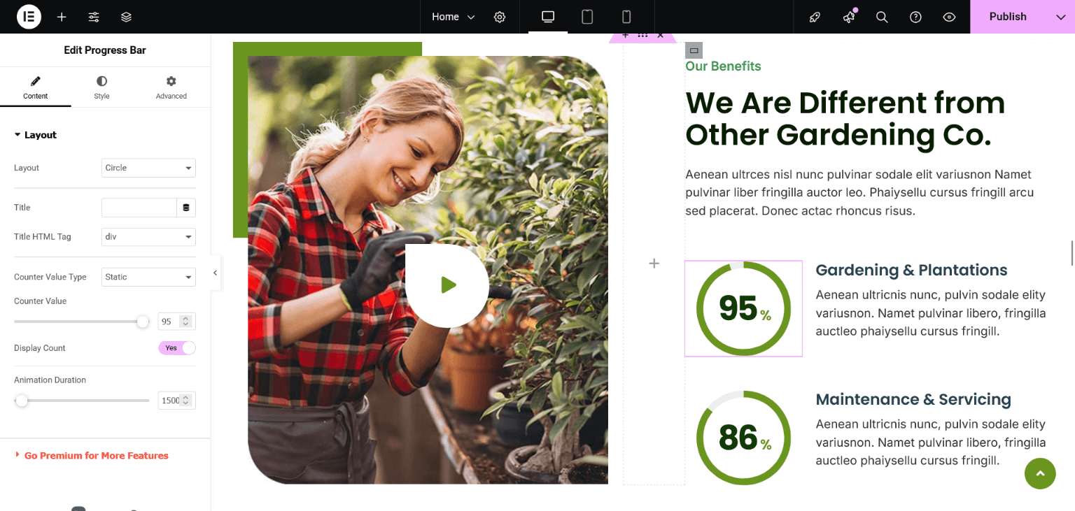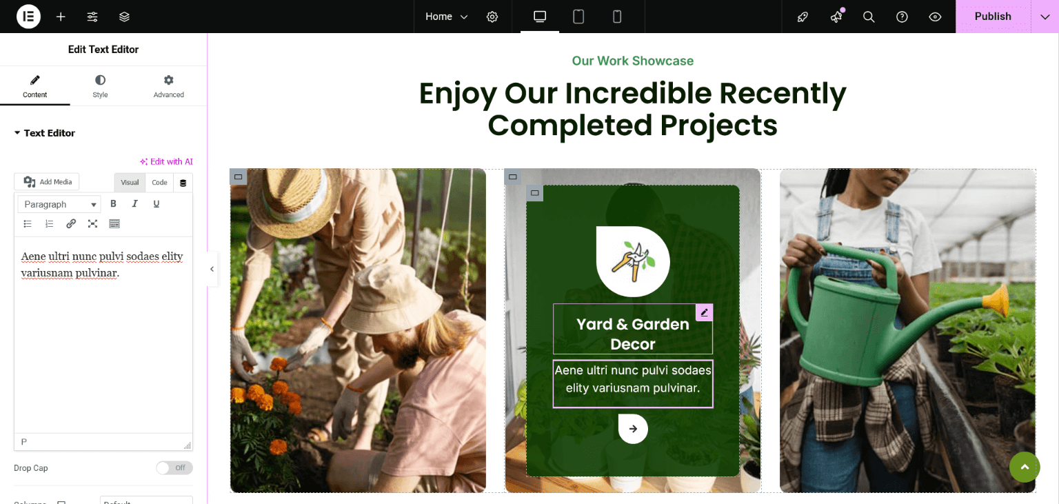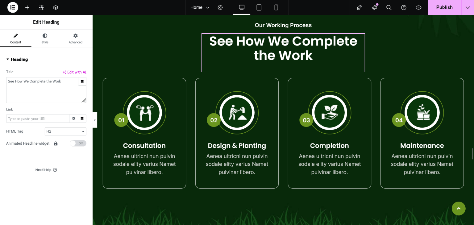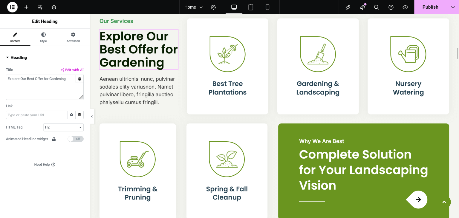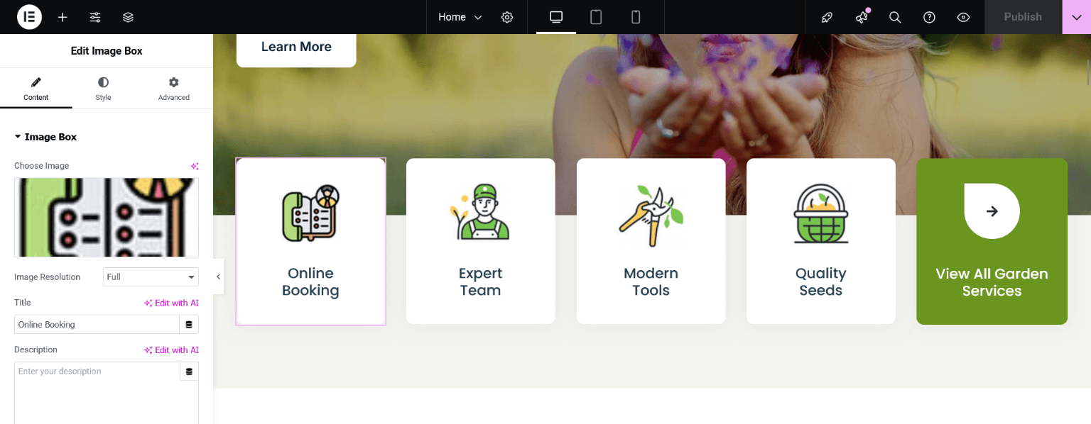 After importing the demo content successfully, you can change the content of homepage sections and all these can be done through the Elementor page builder.