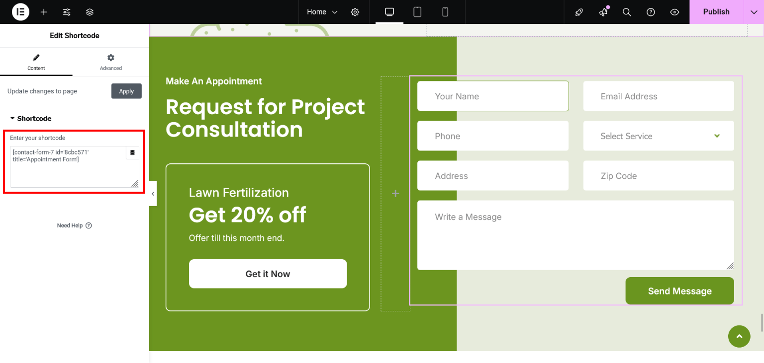 - Add Contact Form 7 plugin shortcode