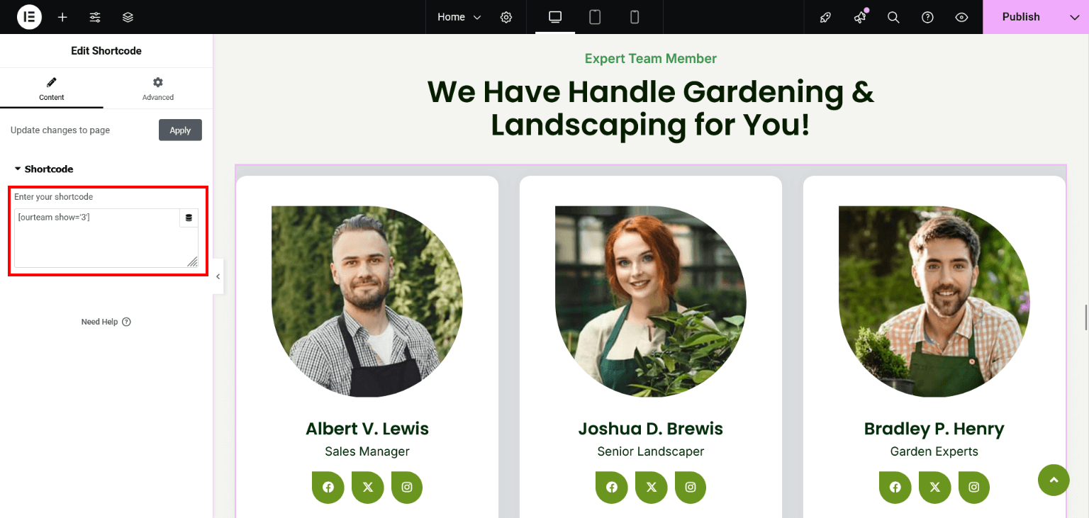 - Create new team member from Our Team > Add New