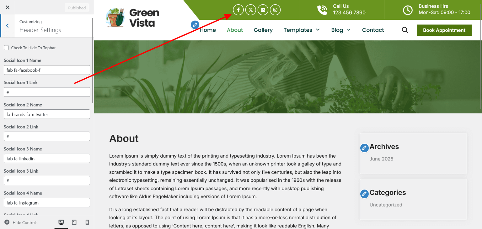 - From your WordPress Dashboard, navigate to the Appearance > Customize > Header Contact Settings