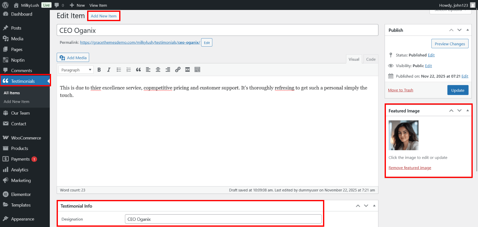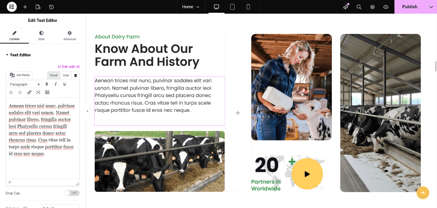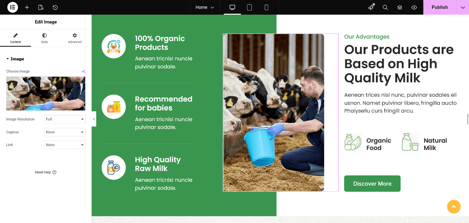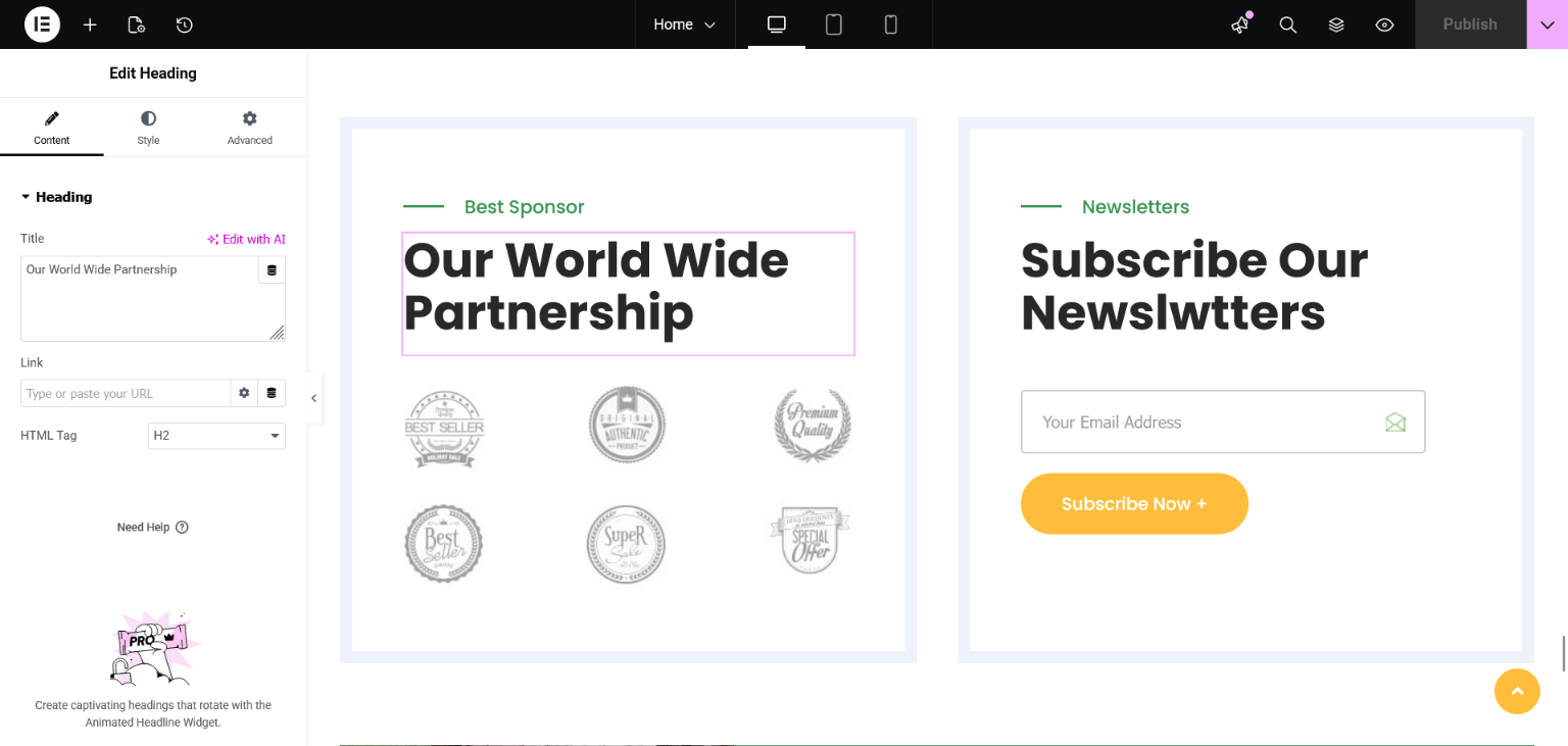 After importing the demo content successfully, you can change the content of homepage sections and all these can be done through the Elementor page builder.