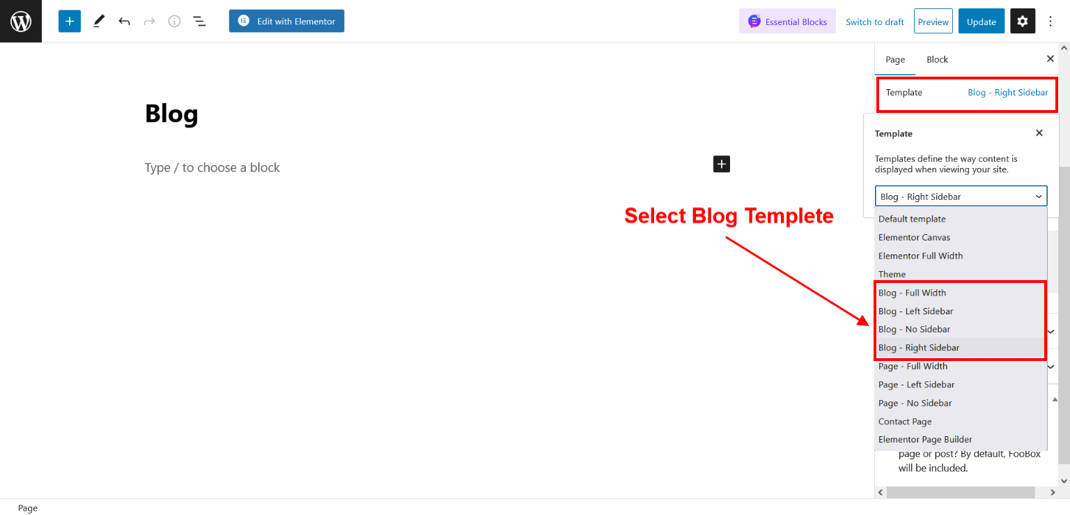 There are varieties of Blog Templates are available which you can use to display the Blog Post with or without sidebar. All you need to do is follow the steps listed below: