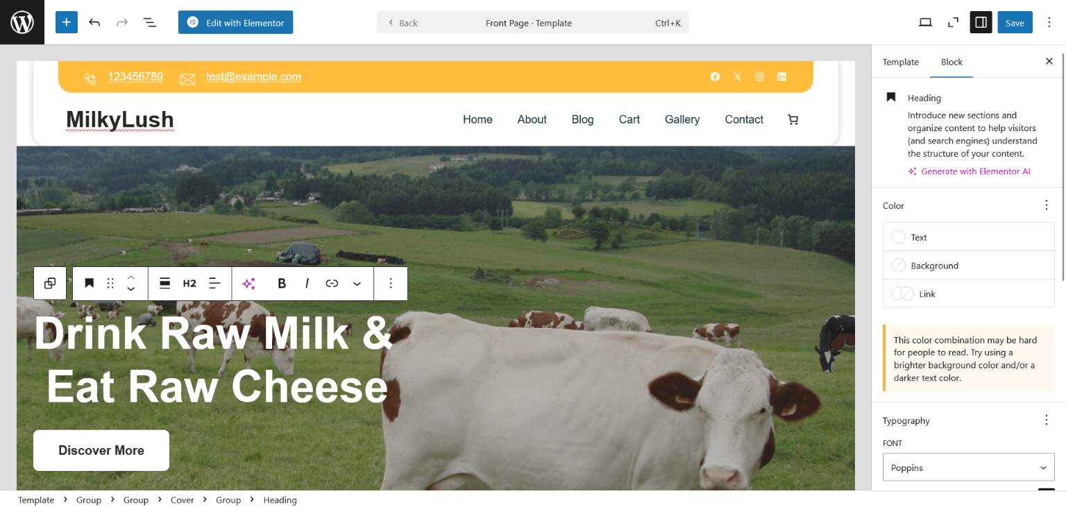 You can simply point and click on any block to edit and change its contents to your own requirements