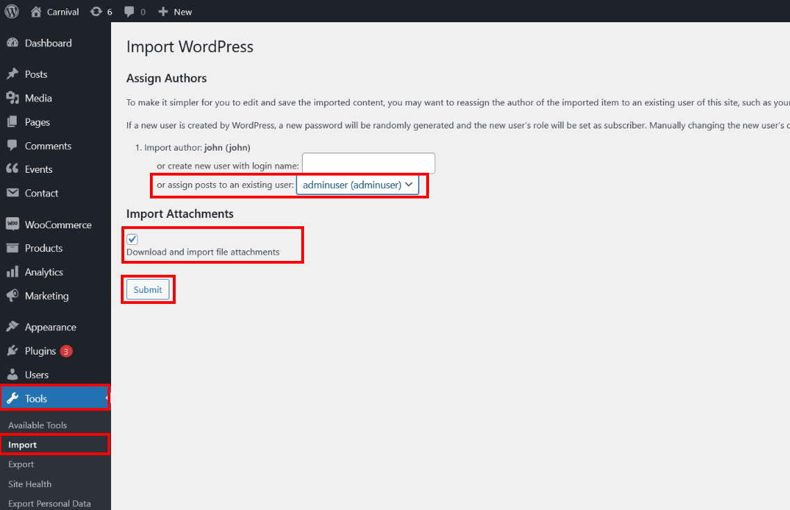 - Please be patient while WordPress imports all the content. Posts, Pages, and Menus are imported. You will need assign the menu a theme location & you'll need to configure widgets. This is a limitation of WordPress import system.