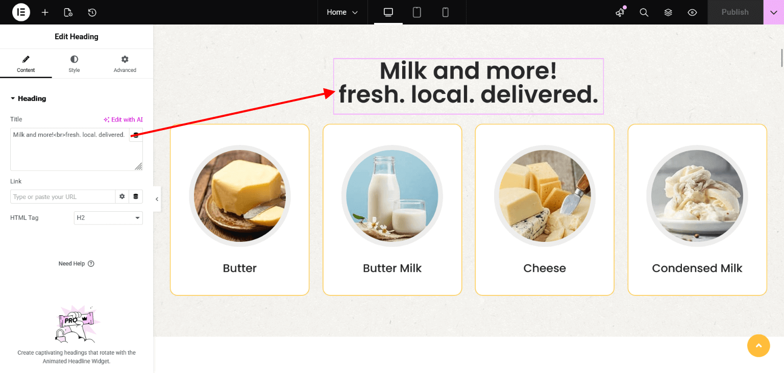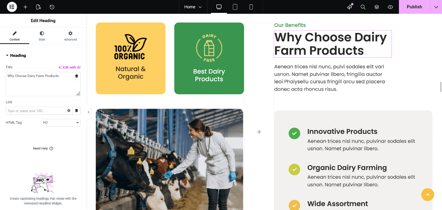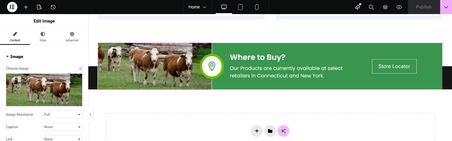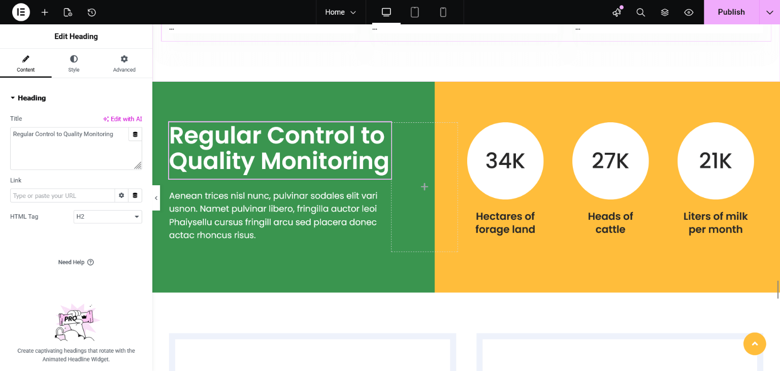 You can edit your page in Elementor using a variety of different widgets. If you click on the section that you need to edit, a corresponding editor section will appear on the left side. You can then use that editor to customize the section.