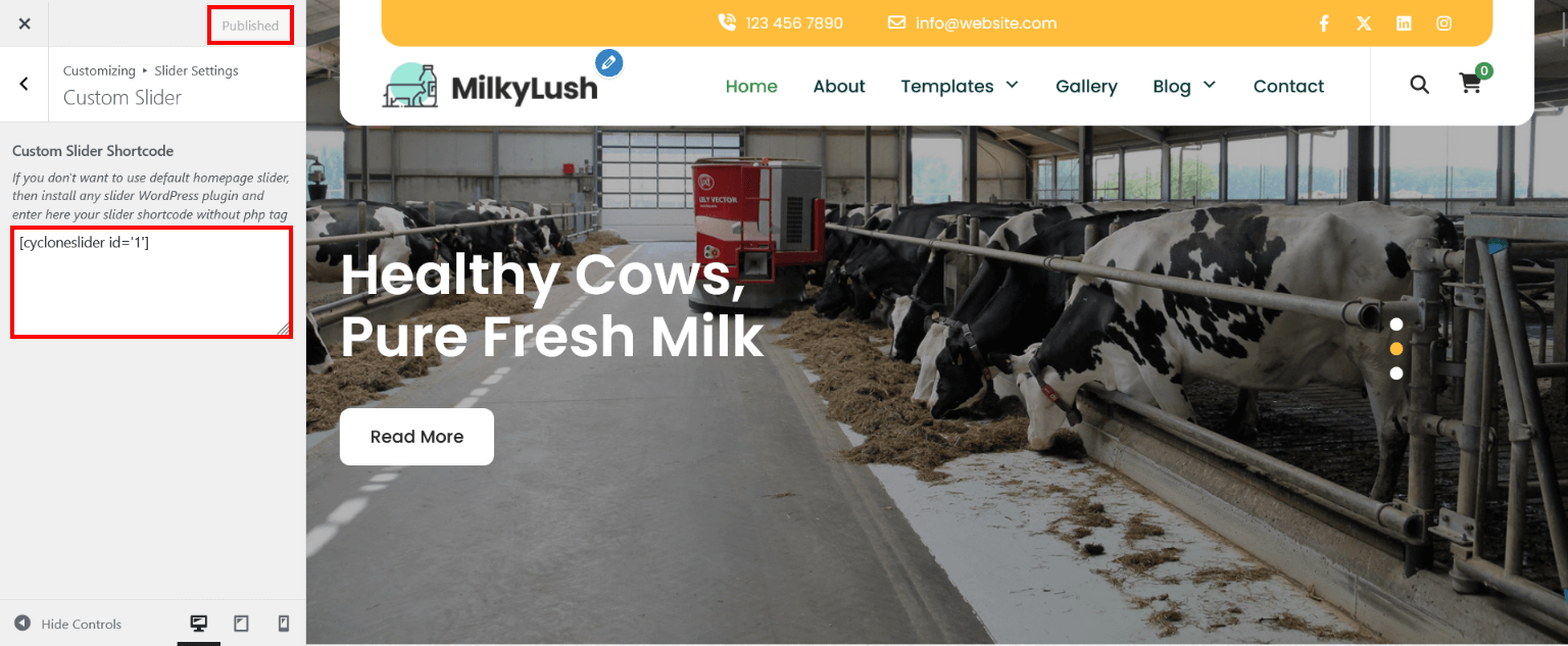 - Go to Appearance > Customize > Slider Section > Custom Slider